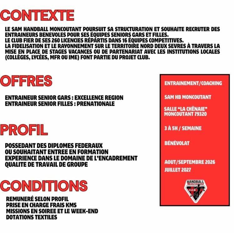 Poste ร pourvoir : SAM HANDBALL MONCOUTANT ร Moncoutant-sur-Sรจvre