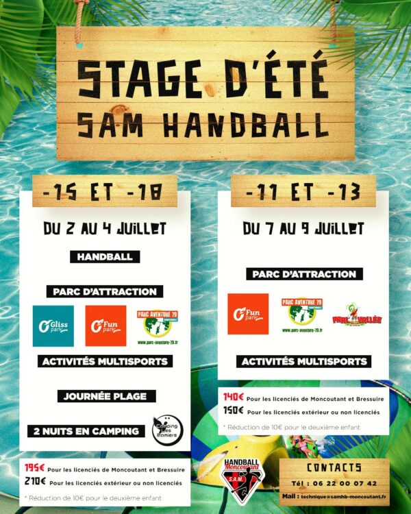 Du 2 au 4 juillet 2026 pour les -15 et -18 ans COUPON-GRAND-STAGE-ETE-2026Télécharger Fiche_sanitaire_stage_eteTélécharger Conditions-générales-stage-étéTélécharger Diplôme natation obligatoire Attestation responsabilité civile Du 7 au 9 juillet 2026 pour les -11 et -13 ans COUPON-PETIT-STAGE-ETE-2025Télécharger Fiche_sanitaire_stage_eteTélécharger Conditions-générales-stage-étéTélécharger Diplôme natation obligatoire Attestation responsabilité civile Clôture des inscriptions le 6 juin 2025